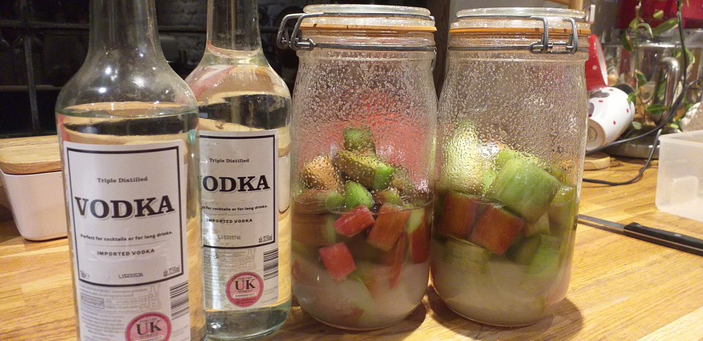 Hilarious Goat kids, Rose the sheep with twin lambs Curly and Whirly, first newly hatched chick on May Day, the two goats Dilly and Maggie and more ducks to increase the egg laying flock, and a revelation this spring: Rhubarb Vodka!